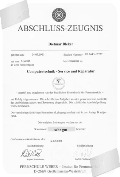 02871 / 2 19 19 52Als PC-Servicetechniker mit zusätzlicher Zertifizierung in der PC- und System-Architektur bin ich, Dietmar Bleker, Ihr kompetenter Ansprechpartner.